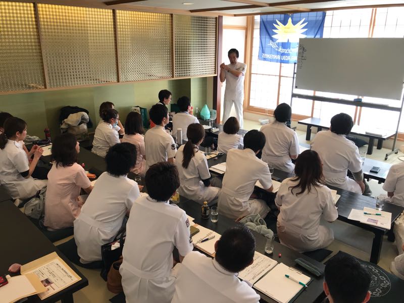 アメリカの最新カイロテクニック実習。先生方も集中して実習に取り組まれていました。時に笑いも溢れ、有意義な時間となったようです。